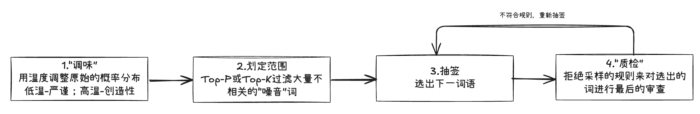 → 步骤5:按归一化后的概率分布 随机采样(核心:多样性来源)