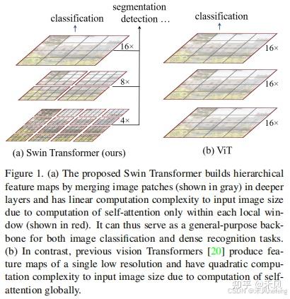 Transformer 最初在自然语言处理(NLP)领域大获成功,但直接将 Transformer 应用于计算机视觉任务存在很多挑战。传统Transformer中,拿到了图像数据,将图片进行划分成一个个patch,尽可能patch细一些。但是图像中像素点太多了,如果需要更多的特征,就必须构建很长的序列。而越长的序列算起注意力肯定越慢,自注意力机制的计算复杂度是 ,当处理高分辨率图像时,这种复杂度会快速增长,这就导致了效率问题。