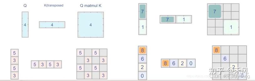 其中, 是每个头的维度(在这里是 32),Q 和 K 的乘积衡量了每个位置之间的相似性。