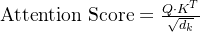 - 自注意力得分(Attention Score) 是通过计算查询与键的点积(或者其他相似度度量)得到的,这可以表示为: