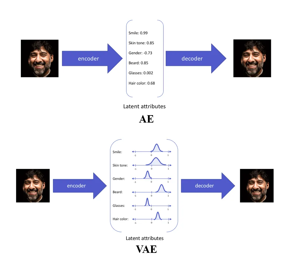 | 对比维度 | AE(自动编码器) | VAE(变分自动编码器) |